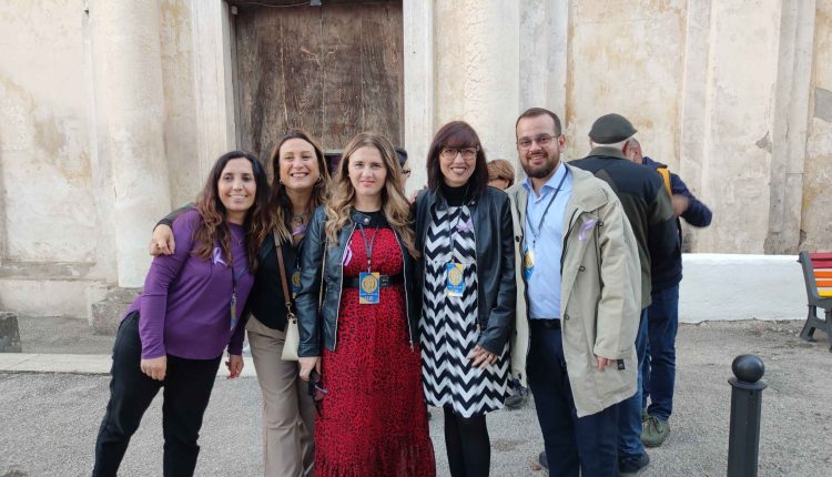 In piazza Tiberio le zucche sono dovunque, sui muretti come sulle balle di fieno, mentre i bambini accompagnati dai genitori scoprono un mondo nuovo e anche personaggi fantastici che li intrattengono nei giochi. L’azienda agricola: “Agri Di Tuoro” di Antonio Fasani ha fornito le innumerevoli zucche. Ma nella chiesa di San Giovanni a Villa il clima è diverso. La mostra dal titolo: “Siamo fatti di Storie”. L’artista Marinella Pompeo di Mondragone espone i suoi quadri dai colori intensi, che ritraggono figure femminili che sanno di mistero. Ed è lei, l’artista Marinella a svelarne il mistero. Marinella, avvolta da un vestito rosso lungo, racconta per la prima volta e con una semplicità disarmante la sua convivenza con l’epilessia. “L’epilessia ha alimentato la mia creatività”. Ma verso i quindici anni gli episodi epilettici sono divenuti più intensi: “L’ho riconosciuta, le ho dato un nome, è come se fossimo diventate amiche.” Conclude: “E la prima volta che lo dico, è un primo step.” L’applauso dei presenti suggella l’ammirazione per Marinella. In prossimità dell’altare foto agghiaccianti delle guerre attuali esposte dal “Circolo Aurunci.” Apertura della Mostra presieduta dal Presidente del Parco Regionale di Roccamonfina – Foce del Garigliano, Adolfo De Petra; l’instancabile amministratrice De Civita e l’assessore allo Sport, Lorenzo Fusco. Nella piazza Tiberio ancora le autenticità del territorio: “Dolciaria Serao” e gli stand delle signore artigiane con i ferri e uncinetti: “Mani creative di Alfonsina e Maria” e “Dal cuore alle mani” di Emilia Fascione di Marina di Minturno, con tanti altri stand da visitare.