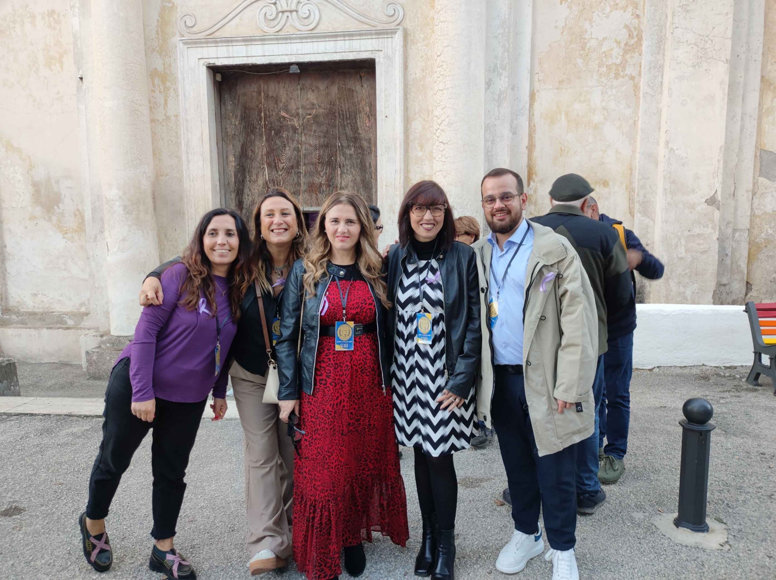 In piazza Tiberio le zucche sono dovunque, sui muretti come sulle balle di fieno, mentre i bambini accompagnati dai genitori scoprono un mondo nuovo e anche personaggi fantastici che li intrattengono nei giochi. L’azienda agricola: “Agri Di Tuoro” di Antonio Fasani ha fornito le innumerevoli zucche. Ma nella chiesa di San Giovanni a Villa il clima è diverso. La mostra dal titolo: “Siamo fatti di Storie”. L’artista Marinella Pompeo di Mondragone espone i suoi quadri dai colori intensi, che ritraggono figure femminili che sanno di mistero. Ed è lei, l’artista Marinella a svelarne il mistero. Marinella, avvolta da un vestito rosso lungo, racconta per la prima volta e con una semplicità disarmante la sua convivenza con l’epilessia. “L’epilessia ha alimentato la mia creatività”. Ma verso i quindici anni gli episodi epilettici sono divenuti più intensi: “L’ho riconosciuta, le ho dato un nome, è come se fossimo diventate amiche.” Conclude: “E la prima volta che lo dico, è un primo step.” L’applauso dei presenti suggella l’ammirazione per Marinella. In prossimità dell’altare foto agghiaccianti delle guerre attuali esposte dal “Circolo Aurunci.” Apertura della Mostra presieduta dal Presidente del Parco Regionale di Roccamonfina – Foce del Garigliano, Adolfo De Petra; l’instancabile amministratrice De Civita e l’assessore allo Sport, Lorenzo Fusco. Nella piazza Tiberio ancora le autenticità del territorio: “Dolciaria Serao” e gli stand delle signore artigiane con i ferri e uncinetti: “Mani creative di Alfonsina e Maria” e “Dal cuore alle mani” di Emilia Fascione di Marina di Minturno, con tanti altri stand da visitare.