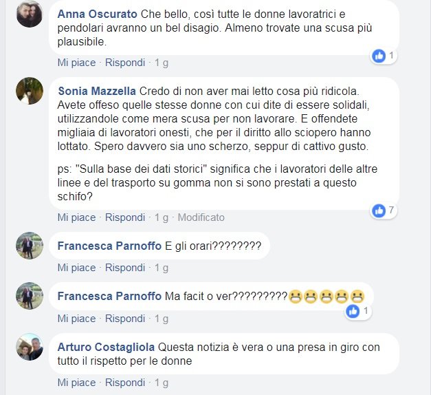 “Certi scioperi non hanno alcun senso” ha aggiunto il consigliere regionale dei Verdi, Francesco Emilio Borrelli, per il quale “basta andare sulla pagina facebook dell’Eav per rendersi conto di quanto questo sciopero sia visto come una presa in giro proprio per le donne”.