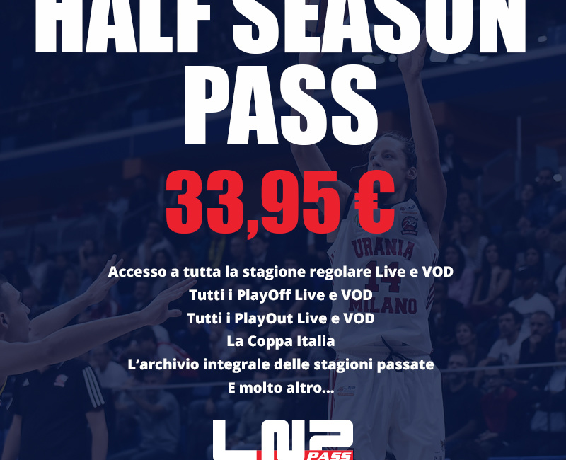 “HALF SEASON PASS” – E’ la proposta di abbonamento ad LNP PASS da cogliere al volo, per seguire la seconda fase della stagione regolare, playoff e playout di Serie A2 sulla piattaforma web tv di LNP.