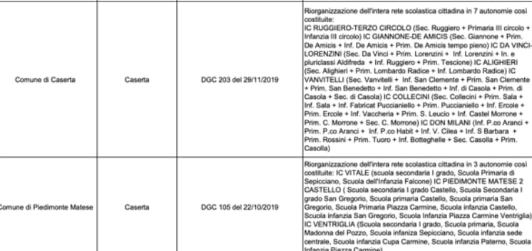 CASERTA/PIEDIMONTE-Nuovo piano di dimensionamento scolastico per Caserta e Piedimonte Matese. Il piano 2020-2021 è stato approvato dalla giunta regionale della Campania.