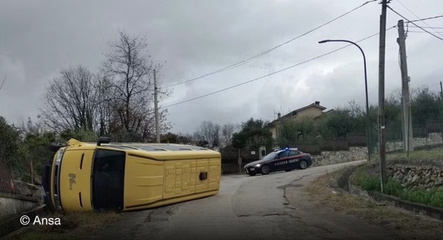Momenti di forte apprensione nel pomeriggio di ieri a Cervaro, in provincia di Frosinone. Qui, uno scuolabus, con a bordo sette bambini delle scuole elementari, si è ribaltato su un fianco. Il mezzo stava percorrendo una strada caratterizzata da una lunga e ripida discesa. L’incidente è avvenuto mentre affrontava una curva al termine del tratto in pendenza. Secondo una prima ricostruzione, il veicolo avrebbe perso il controllo improvvisamente. Tra le ipotesi al vaglio, anche una velocità non adeguata alle condizioni del percorso.