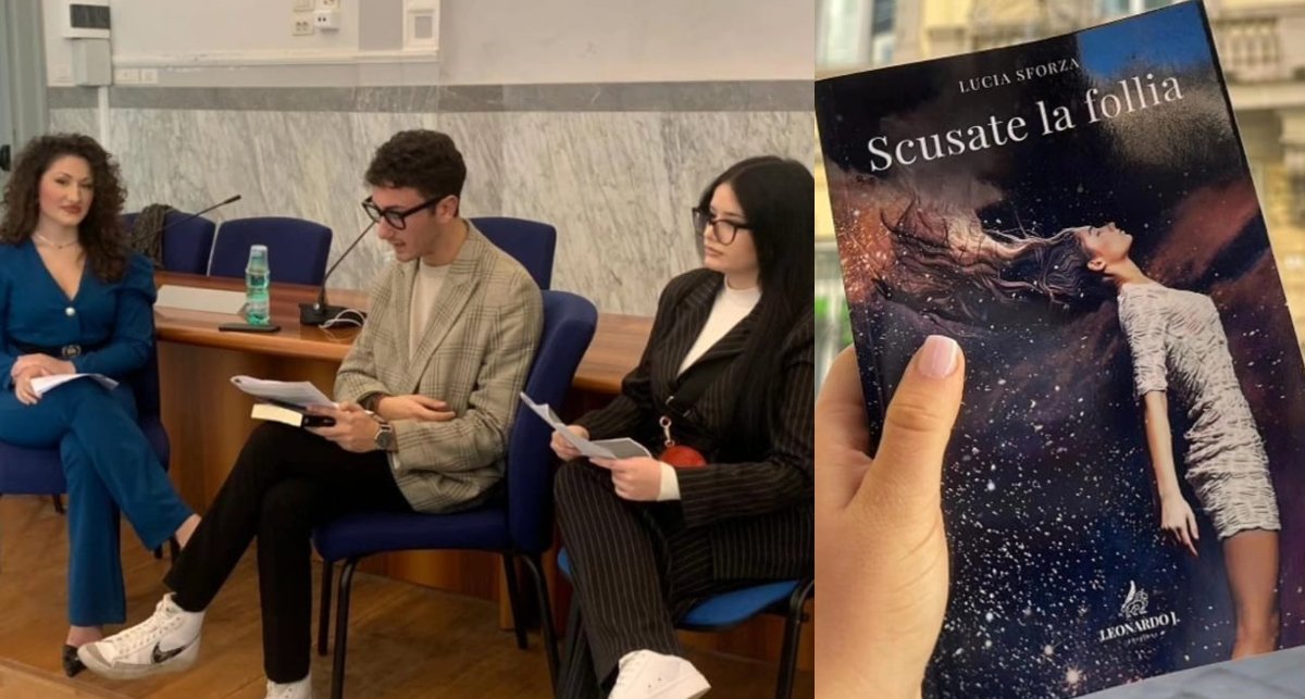 Caserta. “Un vero successo di pubblico e di critica” . Potremmo racchiudere in queste parole la presentazione del libro “Scusate La follia “ che si e’ tenuta nella mattinata di oggi , mercoledì 22 novembre, presso L’Università Vanvitelli –Palazzo Melzi sita a Santa Maria Capua Vetere. L’evento è stato organizzato e fortemente voluto dall’ associazione studentesca Futura Vanvitelli la quale ha fatto in modo che per la prima volta in una sala dell’ Università Vanvitelli-Palazzo Melzi si svolgesse la presentazione di un libro scritto da una studentessa. Al tavolo dei relatori ,oltre alla scrittrice e autrice Lucia Sforza , c’era seduta anche Giusy Romano , giovane universitaria, che nel corso della presentazione ha letto alcuni capitoli del libro. Ha moderato l’ incontro Domenico Iodice altro giovane studente e rappresentante del CDS.