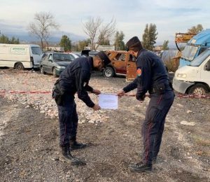 SESSA AURUNCA – Militari appartenenti alla Stazione Carabinieri Forestale di Roccamonfina (CE), coadiuvati da personale ARPAC del Dipartimento di Caserta, nel corso di un controllo ad una ditta esercitante attività di soccorso stradale e custodia veicoli, sita in comune di Sessa Aurunca (CE), alla Via Domitiana, si è accertato, all’interno dell’area di pertinenza aziendale, su una superficie solo in parte dotata di pavimentazione ed in parte coperta con lamiera metallica, è stato allestito un primo deposito di circa 280 autoveicoli e di circa 270 motoveicoli, nonché, in un’area adiacente, della estensione di circa 16.000 mq, un secondo deposito, su suolo nudo, di altri 865 veicoli e 146 motoveicoli circa.