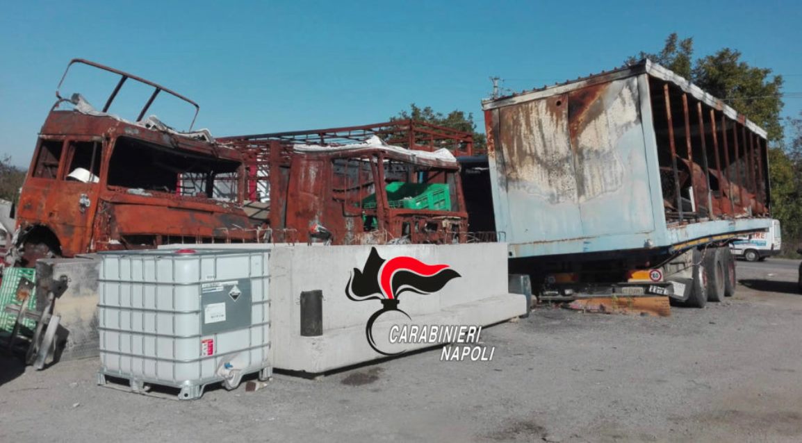 I militari hanno rinvenuto un’ingente quantità di rifiuti, stoccati in container e rimorchi per tir abbandonati: porzioni di carrozzerie e componenti meccaniche di auto, cavi elettrici, metalli, cabine, rifiuti solidi e organici di varia natura, contenitori di lubrificanti aperti ed esposti completamente alle intemperie, taniche di liquidi al momento non identificabili e pneumatici usurati.