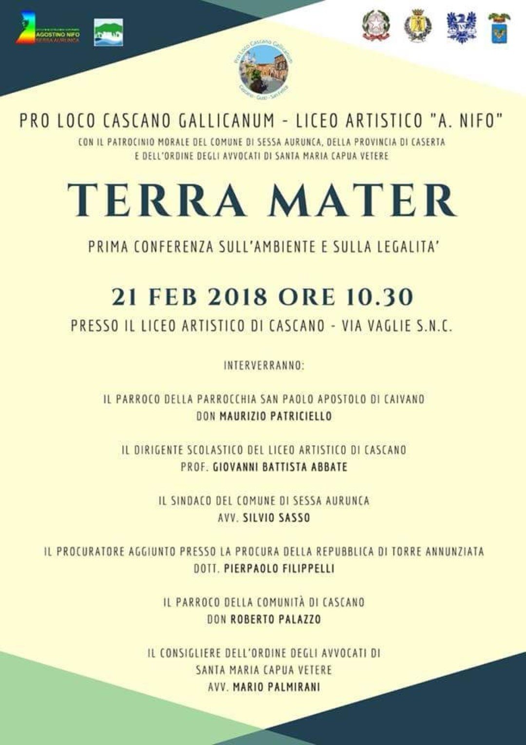 Di questo, di ambiente e di legalità si parlerà nella prima conferenza “Terra Mater”, promossa dalla Pro Loco Cascano Gallicanum in collaborazione con il Liceo Artistico di Cascano.