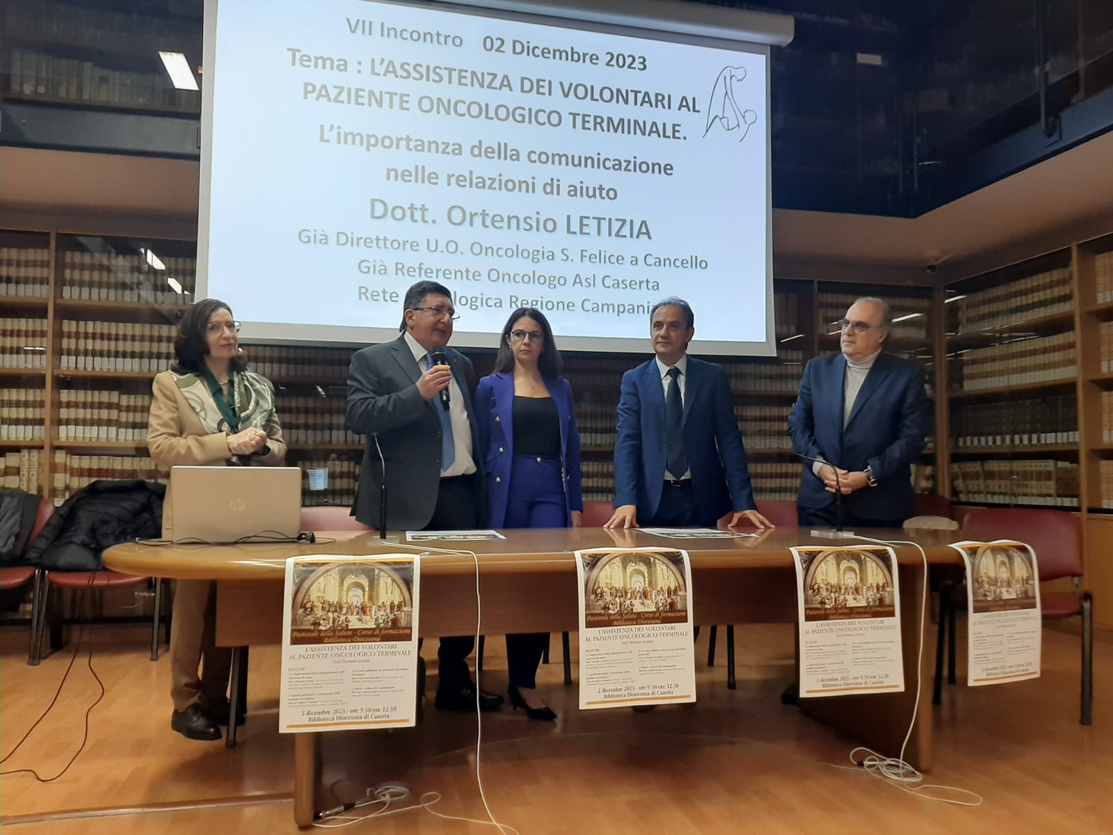 Presso la Biblioteca del Seminario Vescovile della Diocesi di Caserta si è tenuto il settimo incontro dedicato al Malato Oncologico, nell’ambito del Corso di formazione della Pastorale Della Salute, di cui è direttore don Antonello Giannotti, corso fortemente voluto dal Vescovo Mons. Pietro Lagnese. Il settimo appuntamento coordinato dal dott. Giancarlo Infante con la collaborazione di Antonietta Rispoli ha riscosso il plauso dei cento iscritti. Tema di questo penultimo incontro è stato l’ASSISTENZA DEI VOLONTARI AL PAZIENTE ONCOLOGICO TERMINALE, diretto dall’Oncologo dott. Ortensio Letizia. Con il dott. Letizia hanno relazionato la psicologa dott.ssa Angela Cangiano, il dott. Giovanni Sarcinella direttore dell’Hospice e cure palliative di S. Felice a Cancello e la dott.ssa Carmela Iodice dirigente responsabile della farmacia del distretto ASL Ce. La “Mission “ di questo incontro ha posto al centro dell’attenzione, l’importanza di conoscere i bisogni assistenziali dei pazienti oncologici terminali, per poter dare ai volontari della Pastorale della Salute, la possibilità di entrare in empatia con loro e le loro famiglie al loro domicilio, per mantenere viva la speranza nell’affrontare insieme e non in solitudine, la fase terminale con dignità e la consapevolezza di aver lasciato traccia della propria esistenza.