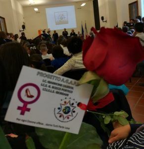La manifestazione è iniziata alle 9.30 con i saluti del sindaco della città, Carlo Marino, dell’Assessore alle Pari Opportunità Maddalena Corvino, delle dirigenti scolastiche Maria Bianco e Antonella Serpico e del dirigente scolastico Salvatore Falco, della coordinatrice regionale Rosaria Picozzi e della storica delle donne Nadia Verdile. È stato davvero emozionante vedere tutti e tre gli Istituti scolastici casertani che hanno presentato, senza alcuna emozione davanti ai loro genitori, insegnanti, presidi, al Sindaco di Caserta, Carlo Marino, ed a tutte le autorità istituzionali partecipanti: canti, balli e monologhi preparati dai piccoli con le proprie insegnanti. Al termine dell’evento, tutti i presenti omaggiati di una splendida rosa.