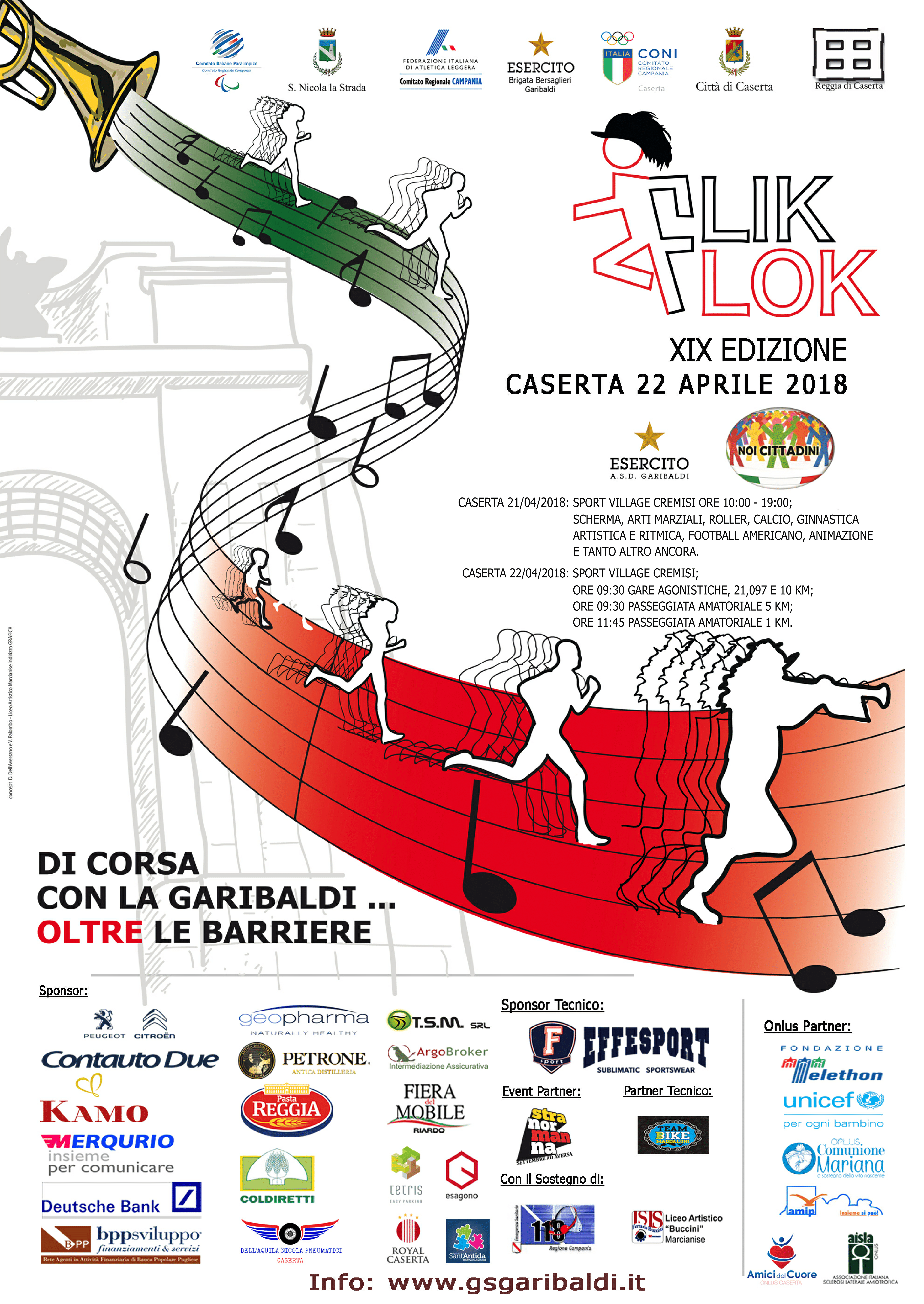 Caserta – si è svolta stamane la corsa podistica Flik Flok, organizzata dall’esercito e dalla Brigata Garibaldi in primis, ottima affluenza, ai nastri di partenza tantissima gente di varie nazionalità provenienti da Caserta e tutto il suo interland. La manifestazione è iniziata con l’alzabandiera ed una esibizione dei bersaglieri. La corsa si è svolta senza particolari problemi, con i vari stand anche pubblicitari che hanno sponsorizzato la manifestazione e non solo, le uniche difficoltà sono state per i casertani che si sono spostati in macchina durante la corsa podistica e hanno trovato le arterie stradali principali della città chiuse al traffico, con tanto di transenne e militari a presidiare l’ordine pubblico, costringendoli ad un ‘giro’ magari inutile ma necessario al fine di raggiungere le loro destinazioni, considerando anche il week end con calura estiva non è da escludere che molti cittadini hanno optato per una gita fuori città, prendendo la variante ANAS per raggiungere l’autostrada evitando così le strade chiuse.
