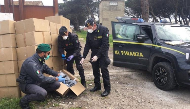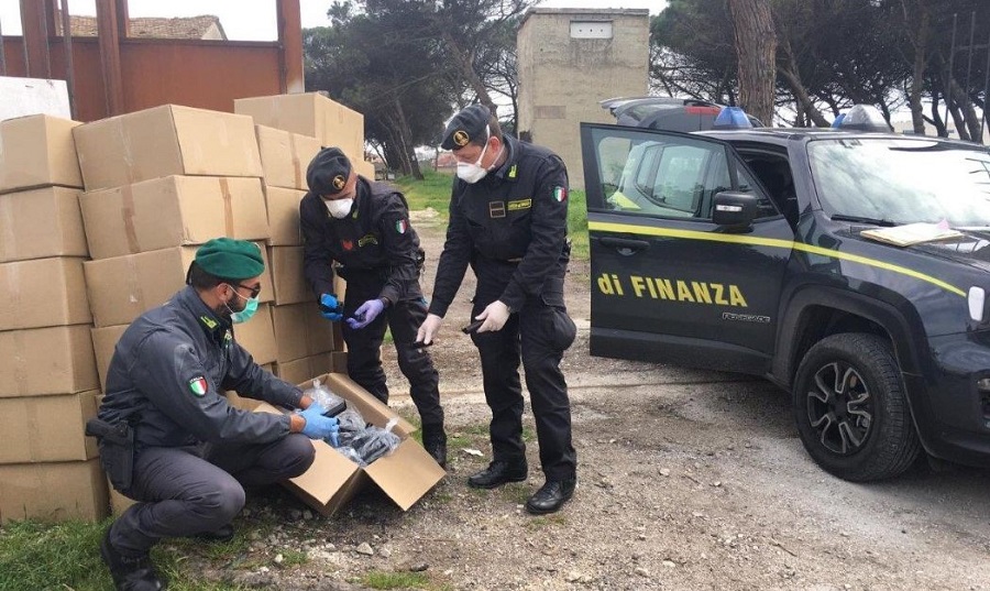 CASTEL VOLTURNO – Nel primo pomeriggio di sabato, 14 marzo 2020, una pattuglia della Compagnia della Guardia di Finanza di Mondragone, nell’ambito dei servizi finalizzati alla verifica del rispetto delle misure urgenti adottate dal Governo in materia di contenimento dell’emergenza epidemiologica da Covid-19, ha sorpreso in Castel Volturno, in una stradina laterale con sbocco sulla Domiziana, due persone intente a caricare su un camion con targa greca numerosi cartoni anonimi, non riportanti alcuna indicazione sul loro contenuto.