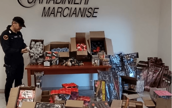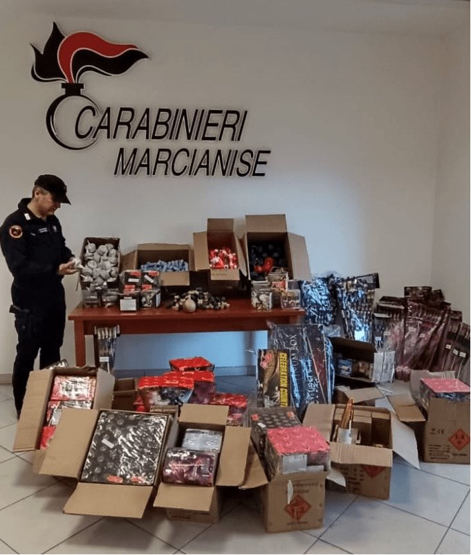 I fuochi pirotecnici, così come i manufatti esplosivi, sono stati rinvenuti dai militari dell’Arma nel corso della perquisizione effettuata all’interno del locale cantinato, di pertinenza dell’abitazione di uno degli arrestati.