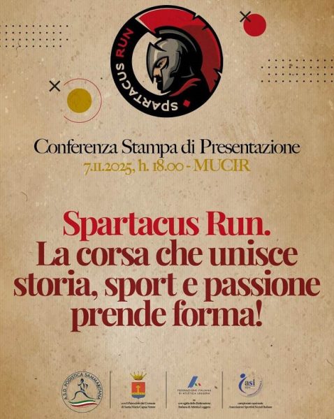 Al Museo Civico e del Risorgimento di Santa Maria Capua Vetere, custode della parola e dei cimeli che raccontano la gloriosa storia della città, si terrà questa sera la presentazione ufficiale della Spartacus 2025, l’evento podistico giunto alla sua terza edizione e organizzato con passione dalla ASD Podistica Sammaritana, guidata dal presidente Giovanni Grimaldi. Durante l’incontro verranno illustrati il percorso e le novità dell’edizione 2025, le partnership e gli eventi collaterali che accompagneranno la manifestazione, divenuta in breve tempo un appuntamento di riferimento nel calendario sportivo campano. Al tavolo dei relatori, accanto al presidente Giovanni Grimaldi, interverranno il sindaco Antonio Mirra, l’assessore Francesco Rosario Di Nardo, il comandante della Polizia Locale Giuseppe Aulicino, il presidente ASI Nicola Scaringi, il designer della medaglia Massimo Catena, Marco Sorrentino, presidente dell’associazione Sogno Attivo, e Luigi Cicco, presidente della locale Pro Loco, Leopoldo Rossi coordinatore Fun Pacer.  La Spartacus 2025 si preannuncia come un’edizione da record: oltre 1.200 atleti sono pronti a sfidarsi domenica 16 novembre, percorrendo i 10 km canonici attraverso le strade Felix, nuove e antiche, di una città che fu culla di Spartaco e della libertà. I successi delle passate edizioni, ampiamente raccontati dai media e celebrati dai partecipanti, hanno confermato la capacità organizzativa della Podistica Sammaritana e l’entusiasmo di una comunità che vive lo sport come momento di incontro, identità e valorizzazione del territorio. La Spartacus 2025 non sarà solo una gara, ma una festa dello sport, della cultura e della città, un tributo alla storia e al futuro di Santa Maria Capua Vetere.