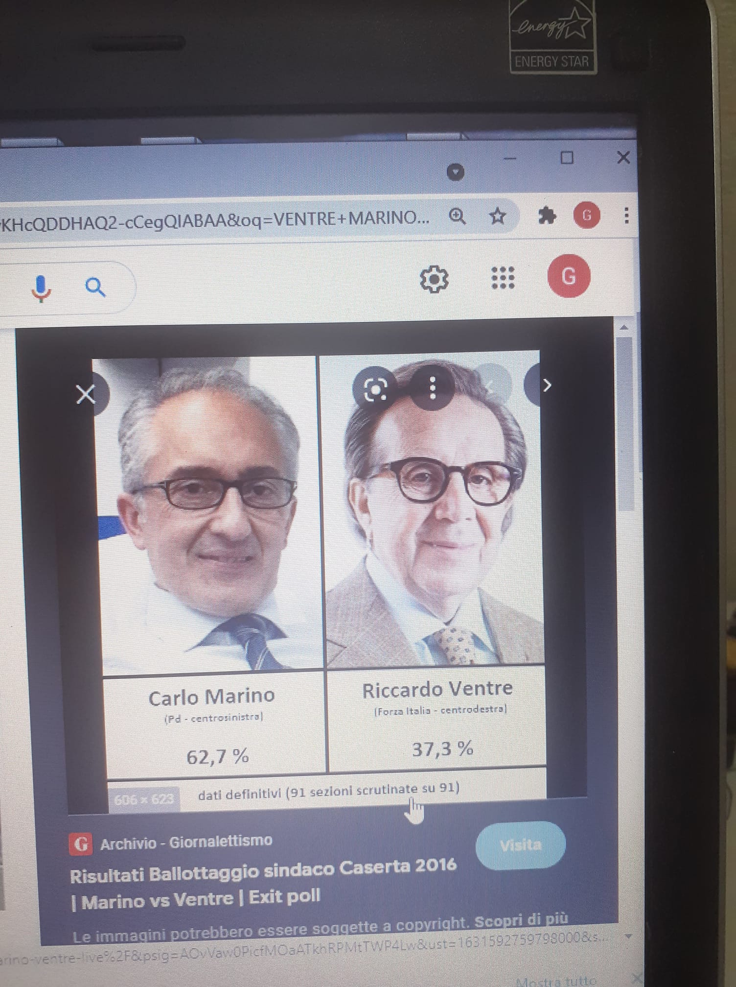 IL RISULTATO SCHIaCCIANTE DELLA VITTORIA DI C. MARINO AL BALLOTAGGIO ALL’ ULTIMA TORNATA ELETTORALE CONTRO R. VENTRE CHE LO VIDE TRIONFATORE CON BEN IL 62 %