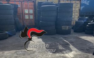 I Carabinieri hanno poi trovato altri due container stracolmi di pneumatici, pronti per essere trasportati. Veicolo, container e pneumatici sono stati sequestrati.
