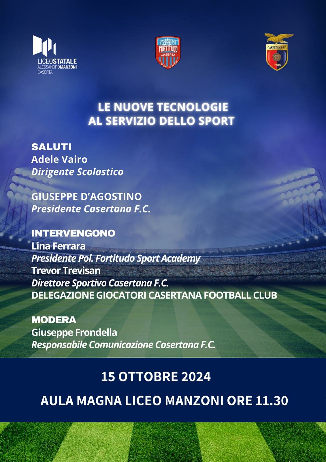 L’incontro – che si terrà il 15 ottobre, presso l’Aula Magna del Liceo Manzoni dalle ore 9:00 alle 13:00 – sarà un’occasione per aprire un dialogo diretto tra i rappresentanti della Casertana e gli studenti manzoniani, che avranno la possibilità di porre domande e partecipare attivamente al dibattito.