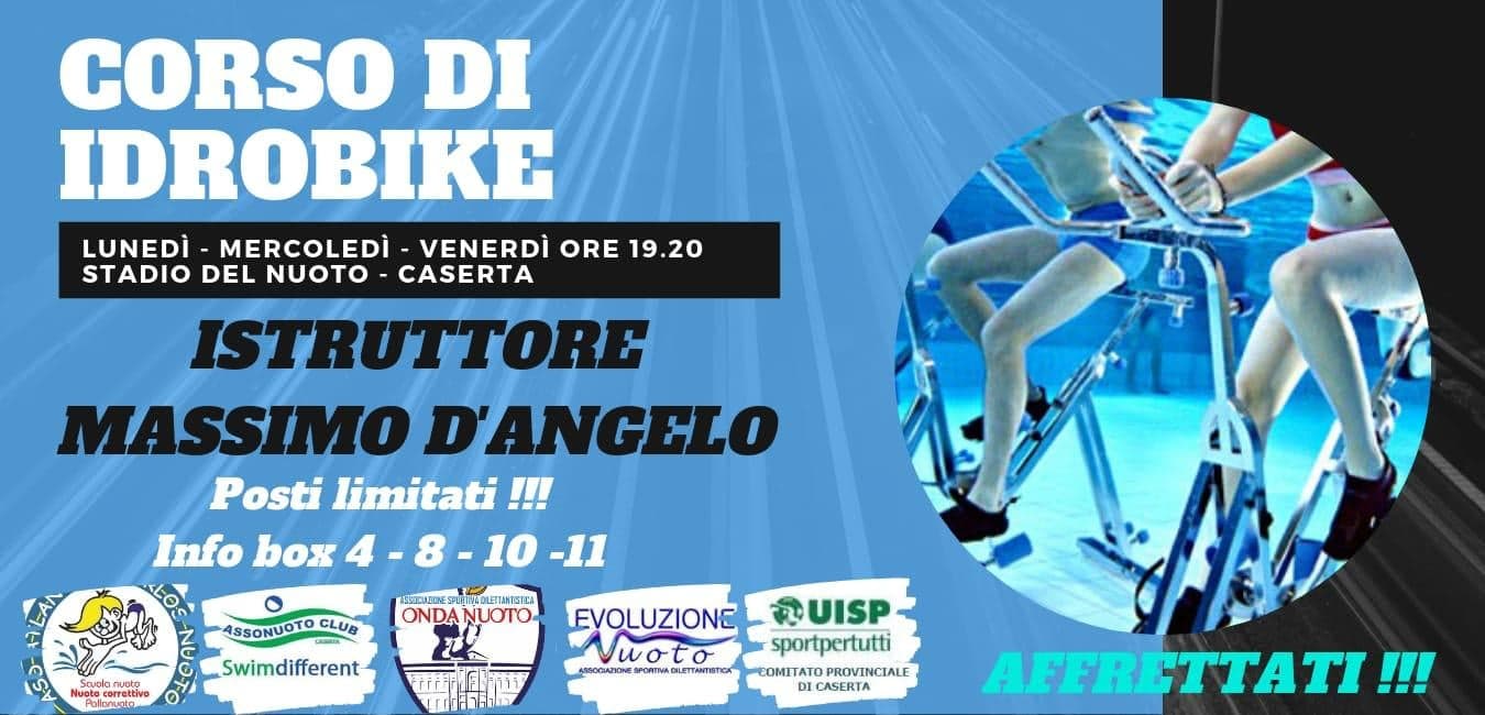 Stanno per riprendere i corsi di nuoto, ma anche di idrobike, con tante novità allo Stadio del Nuoto di Caserta in questa nuova annata sportiva 2019/2020. Anche l’idrobike tra le attività che stano riprendendo presso l’impianto di via Laviano. Per coloro che sono interessati a frequentare i vari corsi, tra cui appunto l’idrobike i giorni in cui è possibilie fare un’ora della predetta disciplina sportiva, sono il lunedi-mercoledì-venerdì dalle ore 19.20 con vari istruttori, tra cui Massimo D’Angelo. Martedì prossimo possibiltà di fare un turno di prova allo Stadio del Nuoto per coloro che vogliono cimentarsi in questa disciplina sportiva che apporta molti benefici.