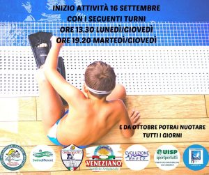 Anche i corsi di nuoto sanno per riprendere per quanto concerne i giorni dal prossimo 16 settembre ecco alcuni turni da segnare in agenda per tutti coloro che sono interessati a riprendere l’ attività sportiva.
