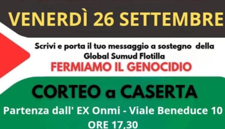 L’attacco terroristico contro la Global Sumud Flotilla, compiuto da droni israeliani, ha innescato una pronta reazione in tutta Italia, da Nord a Sud, con presidi, manifestazioni e altre iniziative, sulla scorta del risultato eccezionale dello sciopero generale del sindacalismo di base di lunedì 22 settembre. Anche Caserta promuove un corteo venerdì 26 settembre alle 17:30 con partenza dall’Ex Onmi Casa del Sociale Mamadou Sy e arrivo in Piazza Ruggiero.