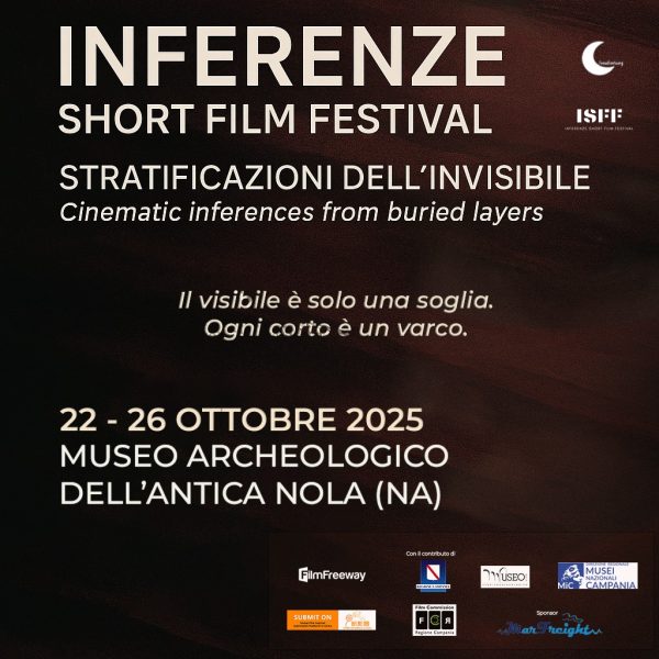 orna a Nola, da mercoledì 22 a domenica 26 ottobre 2025 (ore 20.00), l’Inferenze Short Film Festival, con la VII edizione intitolata “Stratificazioni dell’invisibile”, organizzato da Valentina Sodano per l’Associazione culturale Luna di Seta, ideato da Massimo Piccolo e con il sostegno della FCRC (Film Commission Regione Campania). Cinque giornate gratuite di proiezioni, incontri e contaminazioni tra cinema, arte e filosofia, nel suggestivo scenario del Museo archeologico dell’Antica Nola, dove le immagini contemporanee dialogano con la memoria del passato e un presente in continua trasformazione.