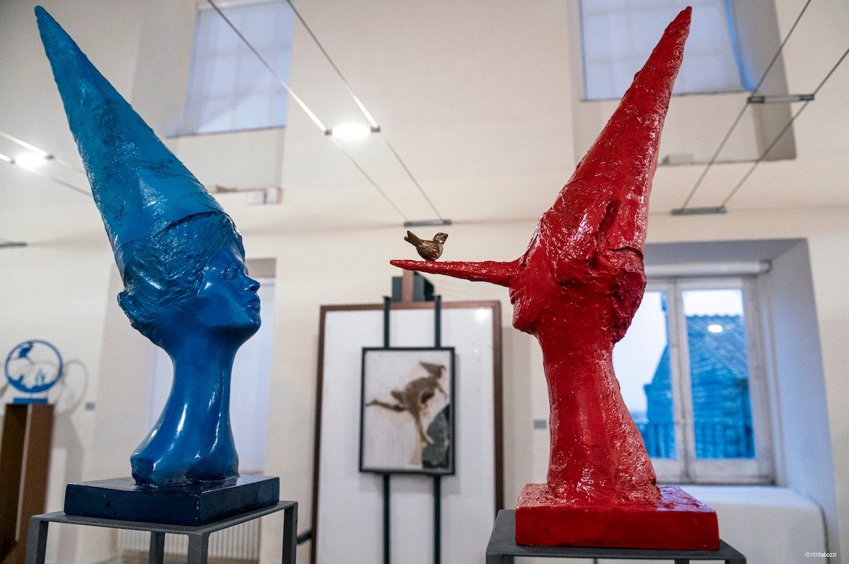 “C’era una volta” – allestita nella sala della prima Filanda del complesso monumentale – indaga il tema della favola (del mito) che nasce dal bisogno istintivo dell’uomo di spiegare le cose del mondo attraverso la creatività. Le opere di questa prima tappa dei Viaggiatori offrono l’occasione per riflettere sulla nostra epoca, dove i ritmi concitati che ci risucchiano come in un vortice, rischiano di farci perdere di vista la nostra capacità di immaginare e sognare. In mostra anche l’installazione “Xenia”, realizzata in bronzo e tecniche miste su legno e plexi, che unisce colori, materiali e simboli sinonimi di libertà e cambiamento spirituale.