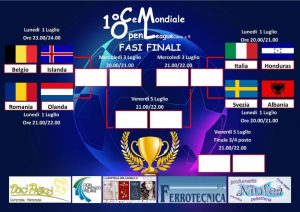 La fase a gironi ha visto affrontarsi 16 nazionali divise in 4 gironi. La formula è quella della più grande competizione internazionale FIFA. Formula mondialino. Da lunedì si passa alla fase finale che vedrà affrontarsi le migliori due di ogni girone. Le partite cominceranno dalle 20, di lunedì appunto, e vedranno affrontarsi: Italia vs Honduras e Svezia vs Albania in contemporanea, poi Romani vs Olanda ed infine Belgio vs Islanda. Durante la fase a gironi sono stati realizzati oltre 270 gol.