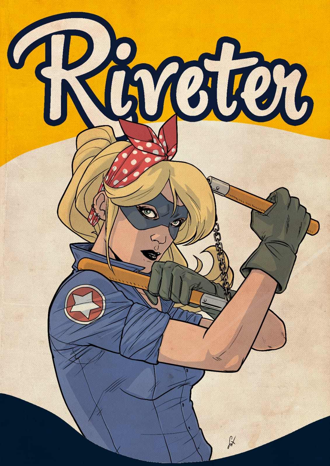 Riveter è un romanzo di supereroi e femminismo. Parto dal concetto prettamente fumettistico del “what if”, ovvero “cosa sarebbe successo se…”. Questo “elseworld” nasce dalla domanda “cosa sarebbe successo se i supereroi fossero realmente esistiti?”, dato che questo aspetto era già stato mostrato nell’opera di Alan Moore Watchmen io ho deciso di voler esplorare un aspetto più fantasioso, restando fedele ai toni della Golden Age supereroistica, mostrando un’America più influenzata dal buonismo, più vicina al sogno utopico americano degli anni ‘50 dove barriere come diversità e parità di genere sono state già smontate. Questo, però, è solo il contesto narrativo. In breve, per quanto riguarda la trama, Riveter parla del percorso di una ragazza qualunque, Dalhia, classica “reginetta del ballo”, alla scoperta della sua identità. La protagonista quando scopre che sua madre veste i panni di Suffragette, una supereroina vestita come Rosie the Riveter (noto manifesto di propaganda femminista), ogni sua convinzione comincia a vacillare e si ritrova senza uno suo scopo nel mondo. La vicinanza di Riot, supereroina giovane, ribelle e impulsiva, l’aiuterà ad avvicinarsi alle risposte che sta cercando. Ovviamente, come ogni storia di supereroi che si rispetti, c’è un cattivo. Un villain che è coinvolto nell’industria del sesso e dello sfruttamento.