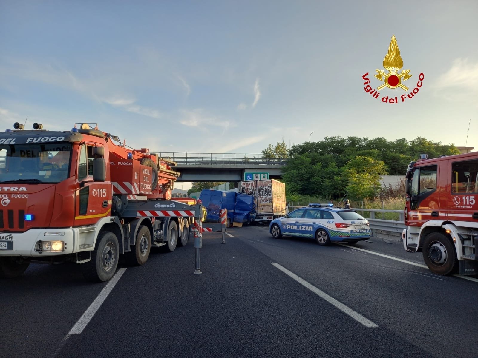 Nel primo mattino di oggi, verso le ore 06:00 , una squadra dei Vigili del Fuoco del Comando provinciale di Caserta , proveniente dalla sede centrale del Comando , è intervenuta sull’autostrada A1, al Km 738+200 nel comune di San Nicola la Strada, allertati dalla polizia stradale per un incidente. Immediatamente giunti sul posto i Vigili del Fuoco hanno trovato un furgone che, per cause in corso di accertamento, aveva tamponato violentemente un’altro furgone che lo precedeva, con uno dei passeggeri, un uomo di 43 anni, rimasto incastrato tra le lamiere del furgone. Subito si procedeva a liberare l’uomo tagliando le lamiere con i gruppi da taglio assicurandolo alle cure del 118 presente sul posto con un’ambulanza che, purtroppo, non poteva fare altro che constatarne il decesso. Sul posto , in supporto alla squadra, è intervenuta anche un’autogrù dalla sede Centrale. L’arteria stradale è rimasta chiusa per tutta la durata dell’intervento. Successivamente i Vigili del Fuoco hanno messo in sicurezza i veicoli per le operazioni di rimozione.