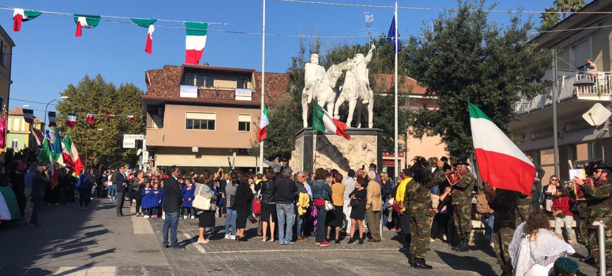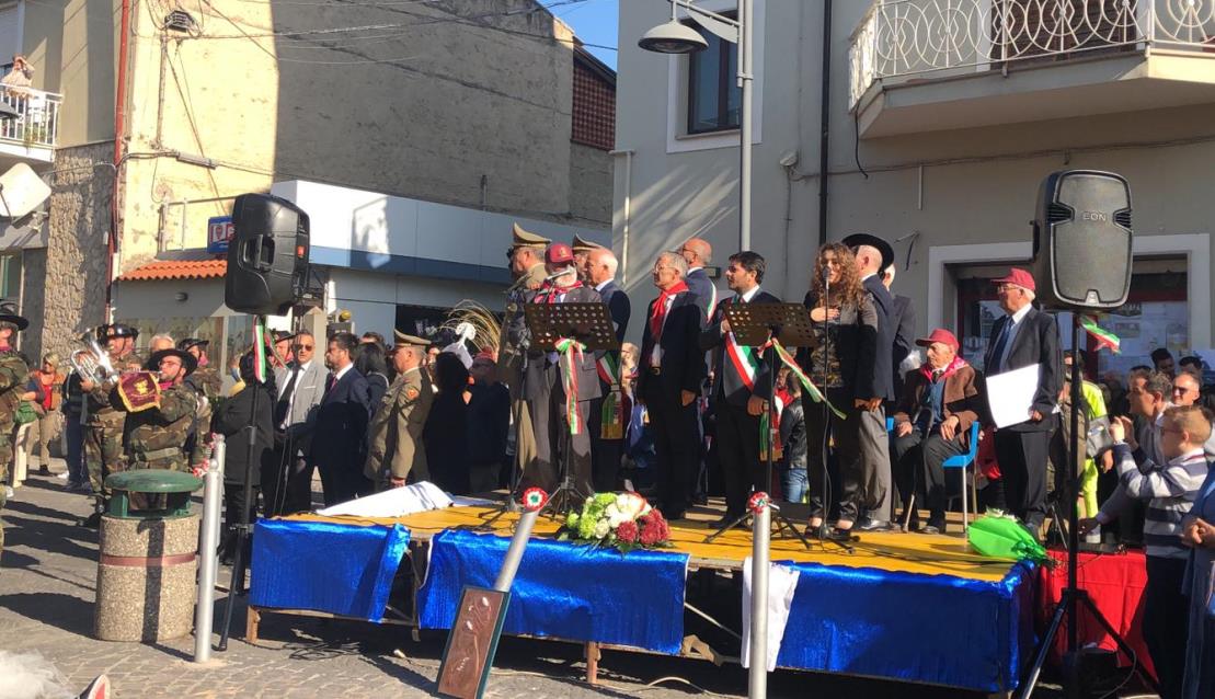 Entusiasmante ed emozionante ascoltare l’Inno d’Italia cantato a squarciagola dai numerosi studenti delle scuole presenti sul territori cittadino e dalla moltitudine di teanesi presenti.