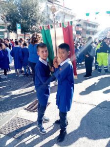 La corona d’Alloro, BENEDETTA DAI SACERDOTI: DON Tommaso NACCA e don Luigi MIGLIOZZI, è stata portata dai Proff.: MONTEFORTE e PALERMITO, mentre all’alzabandiera ha cantato il Soprano Teresa MONTAQUILA.