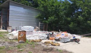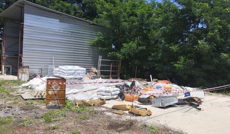 Sulla predetta zona pavimentata sono risultati presenti cumuli di materiali edilizi sparsi in maniera irregolare ed in stato di semiabbandono. Rifiuti quantificati in circa 2 mc sia di speciali pericolosi che non pericolosi, costituiti da materiali per l’edilizia e la verniciatura, nonché materiali lignei, plastici, vetro, metallici, tessuto e pneumatici, e parte di essi sono risultati combusti sul posto.