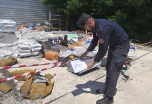 I predetti militari hanno operato il sequestro giudiziario dell’area pavimentata sulla quale sono risultati stoccati i rifiuti speciali ed i residui dei rifiuti combusti ed il proprietario è stato deferito in stato di libertà per combustione e gestione illecita di rifiuti speciali, nonché per la realizzazione delle succitate opere edilizie abusive in area vincolata paesaggisticamente.