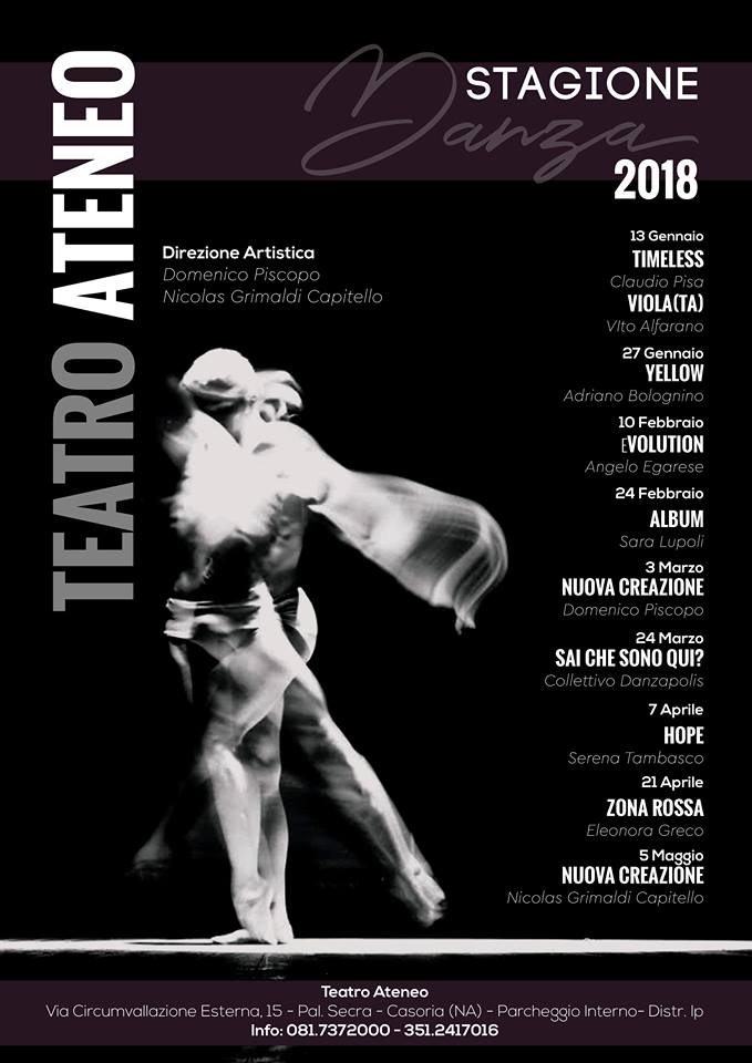 Il Teatro Ateneo presenta la prima stagione di danza. Lo spazio sito a Casoria si presta ad ospitare giovani coreografi napoletani, e non, per offrire, anche al pubblico di provincia, un cartellone dedicato interamente alla danza. La selezione è avvenuta tramite bando.