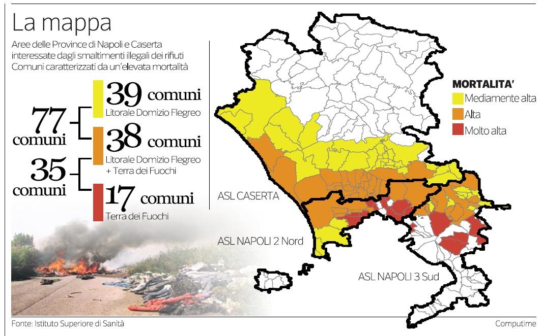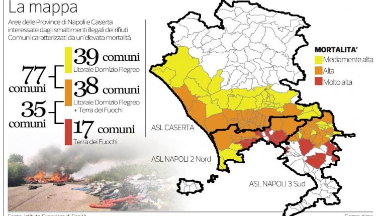 La Terra  dei Fuochi è tornata di nuovo argomento ‘di moda’  ma cerchiamo di capire quello che effettivamente sta succedendo se si sta muovendo qualcosa. Dalle risultanze emerse dello studio tra Istituto superiore della Sanità con la procura aversana di Napoli Nord. Ne è nata una mappa di rischio nei 38 Comuni di quel circondario dove più alta è stata l’incidenza degli sversamenti illeciti.