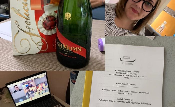 “È inutile negarlo” – ha affermato la dr.ssa Tramontano al termine della seduta di laurea – “ad ogni esame superato c’è uno scalino in meno verso la proclamazione. Se mi avessero detto che mi sarei laureata in casa mia e dinanzi allo schermo di un computer, non ci avrei mai creduto. Ringrazio le persone che con fatica e amore mi hanno sostenuto in questi anni! Si realizza, oggi, un agognato obiettivo!”.