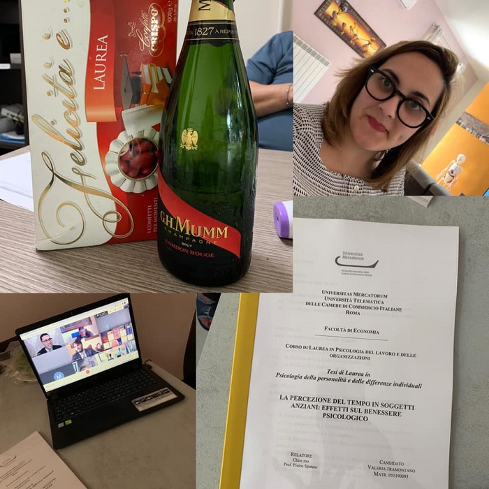 SAN NICOLA LA STRADA – Martedì 16 giugno 2020, in piena pandemia da COVID-19, la dr.ssa Valeria TRAMONTANO ha conseguito la sua terza laurea in “Psicologia del Lavoro e delle Organizzazioni, presso l’Università Mercatorum di Roma. La Tesi di Laurea in Psicologia della personalità e delle differenze individuali avete per oggetto: “La percezione del tempo in soggetto anziano: effetti sul benessere psicologico”. Relatore il Chiar.mo Prof. Pietro SPATARO.