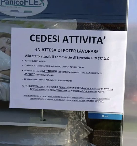 Giornata di disagi a Teverola (CE), i negozianti di via Roma si sono rivolti al commissario prefettizio a causa di alcune problematiche relative all’occupazione del suolo pubblico. Negli ultimi giorni la neonata associazione “I Commercianti di Teverola” ha richiesto un incontro con le istituzioni, le quali non hanno fornito alcuna risposta. Per questo motivo, nella giornata di mercoledì 20 dicembre è stato organizzato un sit-in nei pressi del municipio e, soprattutto, sono state calate le serrande delle attività commerciali di via Roma con affisso un foglio con su scritto: “Cedesi attività (…), allo stato attuale il commercio di Teverola è in stallo”.