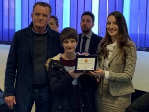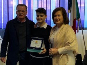 Il primo classificato con il Dirigente Guarino e la Presidente di giuria