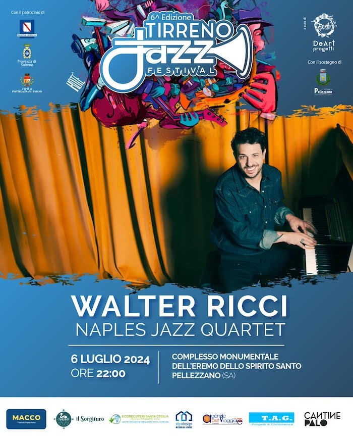 Il Tirreno Jazz Festival annuncia la sua prossima edizione partendo con un evento estivo in atemprima. La sua sesta edizione vedrà protagonista il crooner napoletano Walter Ricci in 4et in concerto che presenterà il suo ultimo lavoro discografico “Naples Jazz”. Questo esclusivo live si terrà il 6 luglio presso il prestigioso Complesso Museale – L’Eremo dello Spirito Santo, situato nel suggestivo comune di Pellezzano (Sa).