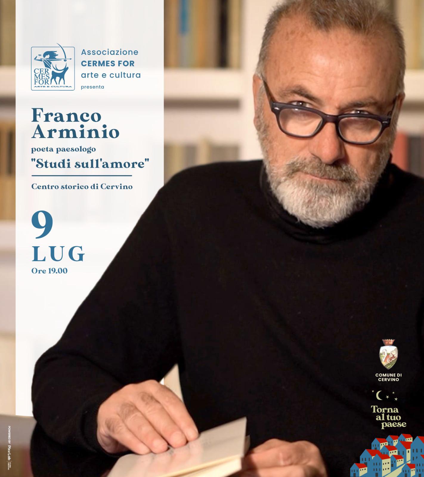 Cervino- Franco Arminio sarà uno dei protagonisti dell’Estate Cervinese. Il 9 Luglio infatti sarà nel piccolo paese della Valle di Suessola per presentare il suo ultimo lavoro ” Studi sull’amore”. Inserito all’interno del cartellone presentato dal Comune di Cervino, l’evento con il famoso scrittore paesologo, è frutto della collaborazione con Cermes, una bella realtà associativa che già da qualche anno si è caratterizzata per la qualità delle manifestazioni organizzate e per l’importanza dei nomi che gravitano intorno al progetto “Biblioteca Michele Vigliotti” fortemente voluto dai ragazzi dell’associazione.