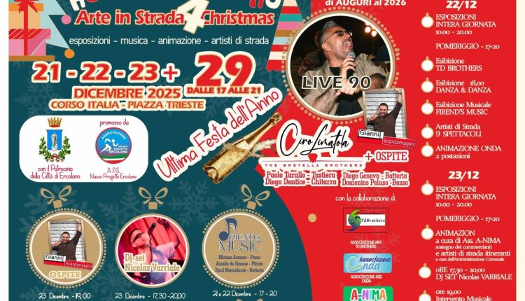 Arte in strada for Christmas, dal 21 al 29 dicembre 2025, diventa così molto più di un cartellone natalizio: è una dichiarazione d’intenti. È la dimostrazione che, quando una comunità sceglie di camminare insieme, anche il Natale può diventare un atto di resistenza e di speranza.