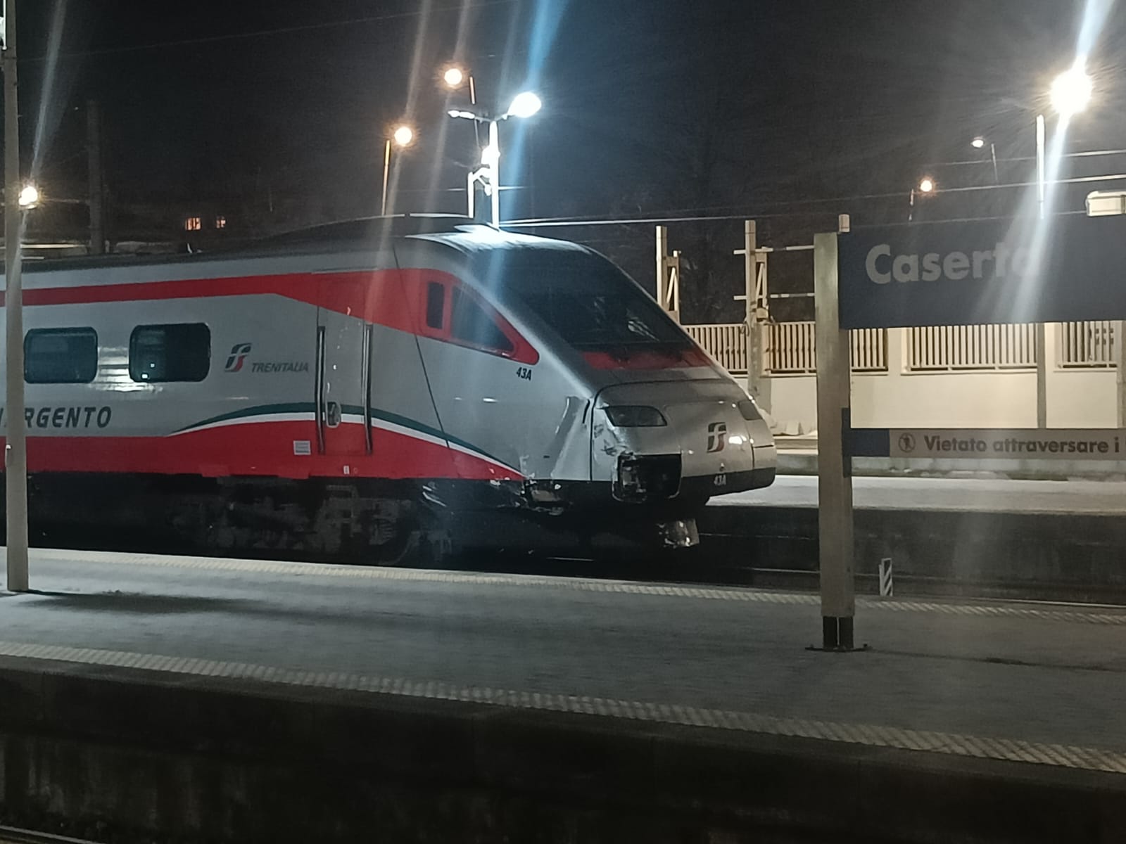 Ieri sera un incidente ferroviario per fortuna senza vittime, si e registrato nei pressi di Frasso Telesino, il Freccia argento Alta velocità 8314 ha urtato un carrello. Tanta la paura, ma fortunatamente non è avvenuto un deragliamento. L’evento si e registrato tra Frasso Telesino e Amorosi, che sono località della linea Roma — Bari. Sul luogo sono arrivati comunque i soccorsi e la polfer, che sta indagando sull’accaduto.