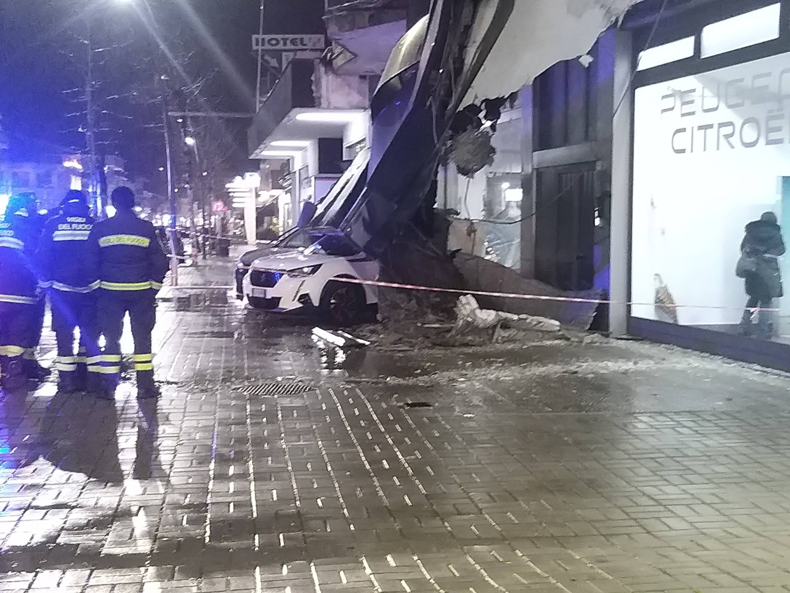 Per fortuna non si sono registrati feriti, ma il crollo, con un botto enorme, avvertito anche a distanza da diversi testimoni, ha provocato evidenti danni ad alcune auto in esposizione all’esterno dell’autosalone.