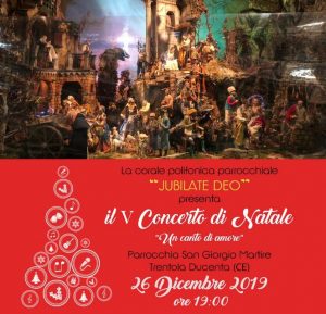 Se il “quadro” sacro del presepe sarà un’esperienza visiva molto suggestiva e pronta a commuovere i fedeli, anche il coro farà la sua parte. Il 26 dicembre presso la parrocchia di San Giorgio, alle ore 19, la corale polifonica parrocchiale “Jubilate Deo” presenterà il V concerto di Natale “Un canto di amore”, facendo un excursus musicale di tutti gli autori più importanti dal ‘600 fino ai giorni d’oggi.