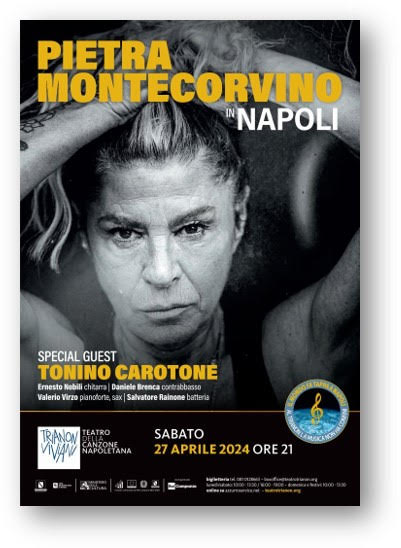 Pietra Montecorvino, al secolo Barbara D’Alessandro, ha esordito con Renzo Arbore e Roberto Benigni in FF.SS. Cioè: “…che mi hai portato a fare sopra a Posillipo se non mi vuoi più bene?”. Il brano Sud, che interpreta nel film, è un inno del carattere ribelle e focoso del Mediterraneo. Il suo primo album vero, Segnorita, risale al 1991 ed è scritto dai fratelli Eugenio ed Edoardo Bennato. Lo stesso anno vince la targa Tenco come “miglior interprete dell’anno”. Partecipa a Sanremo, vince il premio Tenco ed è tra i protagonisti del docufilm Passione di John Turturro, nel quale interpreta Nun te scurdà con Raiz, Dove sta Zazà e Come facette mammeta.