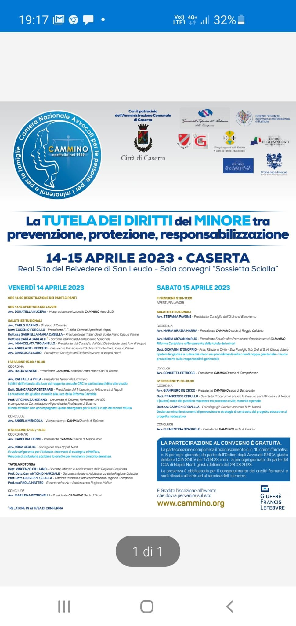 CAMMINO AREA SUD- CONVEGNO CASERTA 14/15 APRILE 2023 nella splendida cornice del Real Sito di San Leucio “LA TUTELA DEI DIRITTI DEL MINORE TRA PREVENZIONE, PROTEZIONE E RESPONSABILIZZAZIONE” .