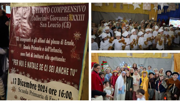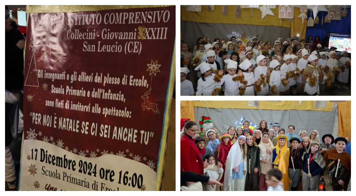 Caserta, E’ stata un pomeriggio superlativo quello organizzato ieri, martedì’ 17 dicembre, dall’Istituto Collecini – Giovanni XXIII di Ercole . Insegnanti , alunni della primaria e i piccoli dell’ Infanzia , hanno coinvolto le famiglie e gli abitanti del quartiere per realizzare un suggestivo Presepe Vivente . Si è trattato di uno spettacolo di Natale come da vecchia tradizione : ” Per Noi è Natale se ci sei anche tu” ,questo il tema della serata. In un’atmosfera calorosa ed accogliente i bambini hanno fatto rivivere antichi mestieri e tradizioni del territorio.