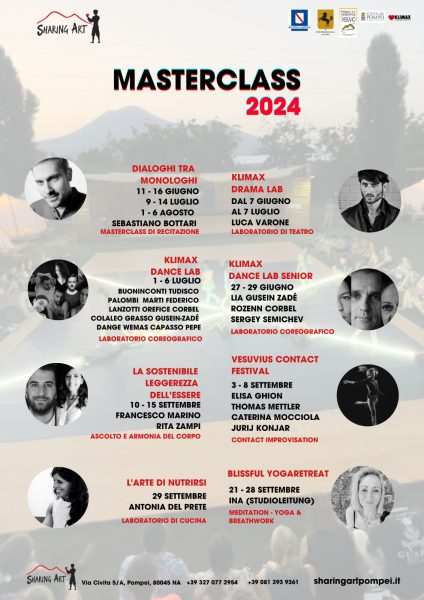 Il calendario 2024 delle masterclass è davvero ricco ed organizzato con l’intento di mettere a confronto artisti provenienti da tutta Italia con una rosa di coach di alta formazione, fornendo agli artisti un’opportunità per continuare ad esprimere il proprio talento e la propria passione.
