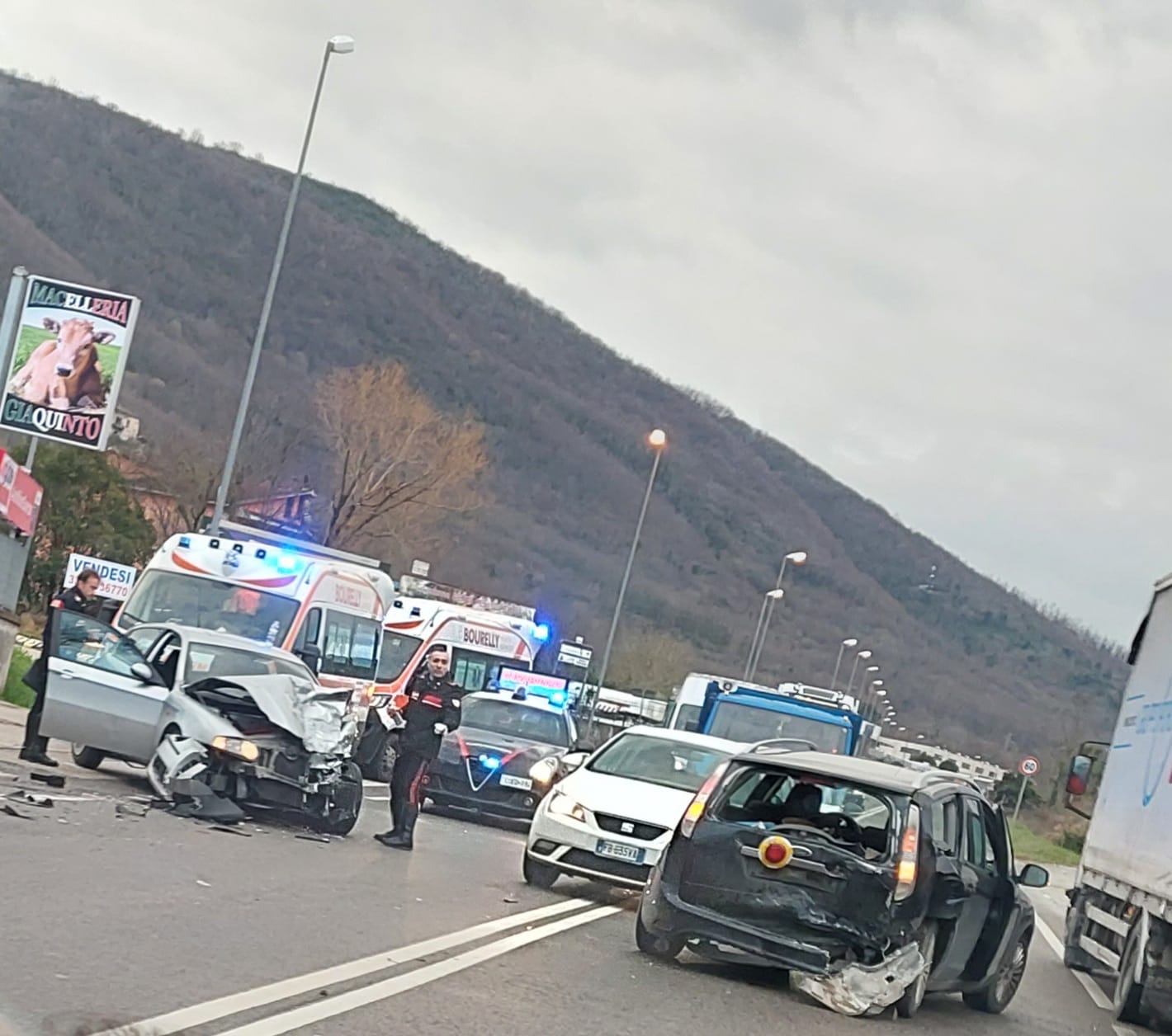 Maddaloni/Valle di Maddaloni. Lo scontro è avvenuto all’alba prima delle 7.00 sulla strada ex sp 335 che conduce all’Acquedotto Carolino, strada purtroppo nota per gli innumerevoli incidenti. Lo scontro di stamattina tra i 2 veicoli è stato piuttosto violento. Le auto sono distrutte e gli automobilisti feriti, anche se pare non gravemente per fortuna. Sul posto i sanitari del 118 e 2 pattuglie dei Carabinieri della locale stazione per stabilire dinamiche e responsabilità