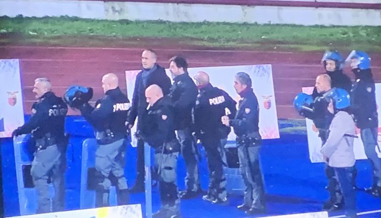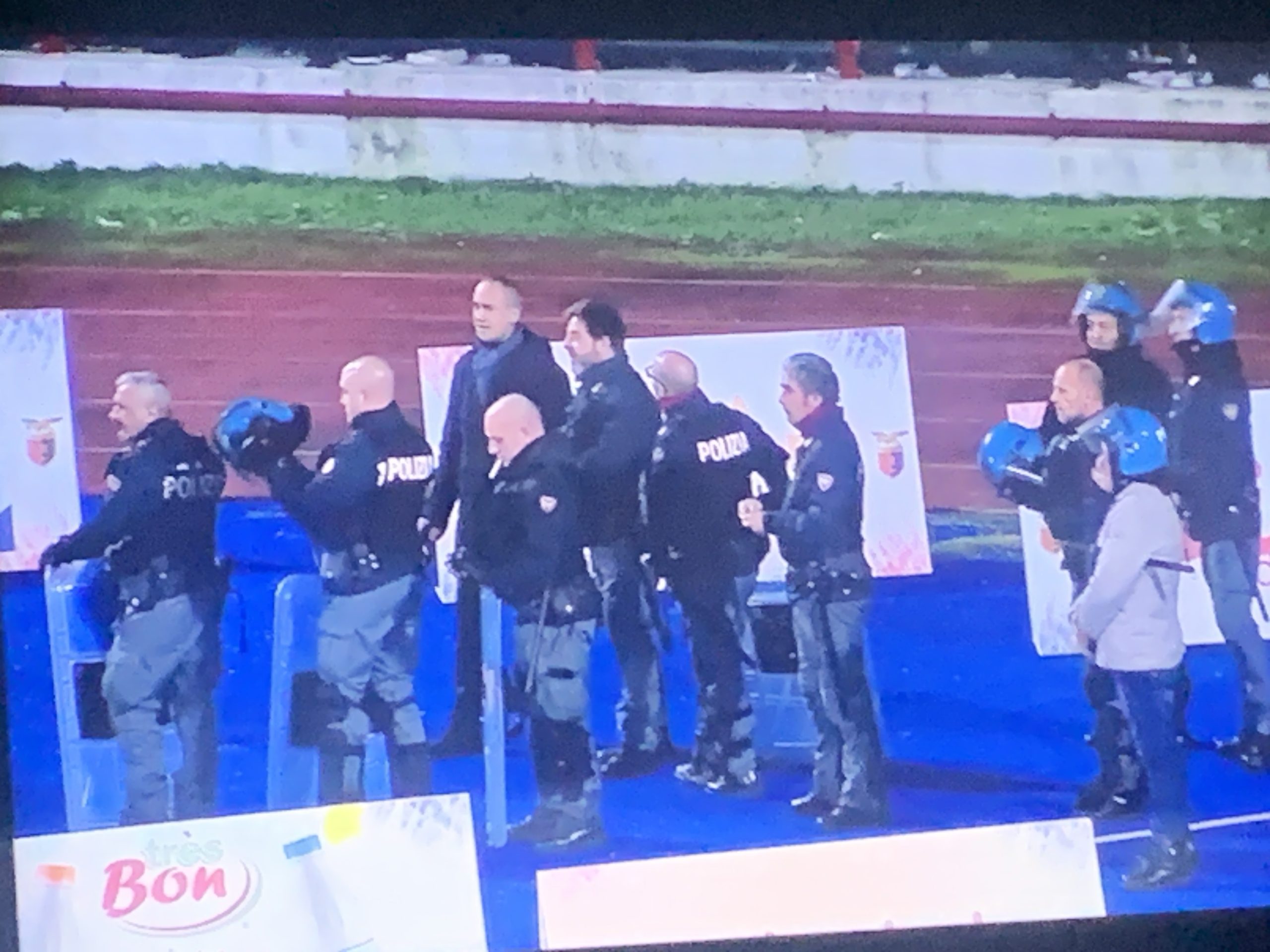 Per l’ intera frazione di gioco si sono alternati sfottò’ da entrambi le parti , ben presto poi la situazione e’ degenerata e dai cori si e’ passato ai fatti .
