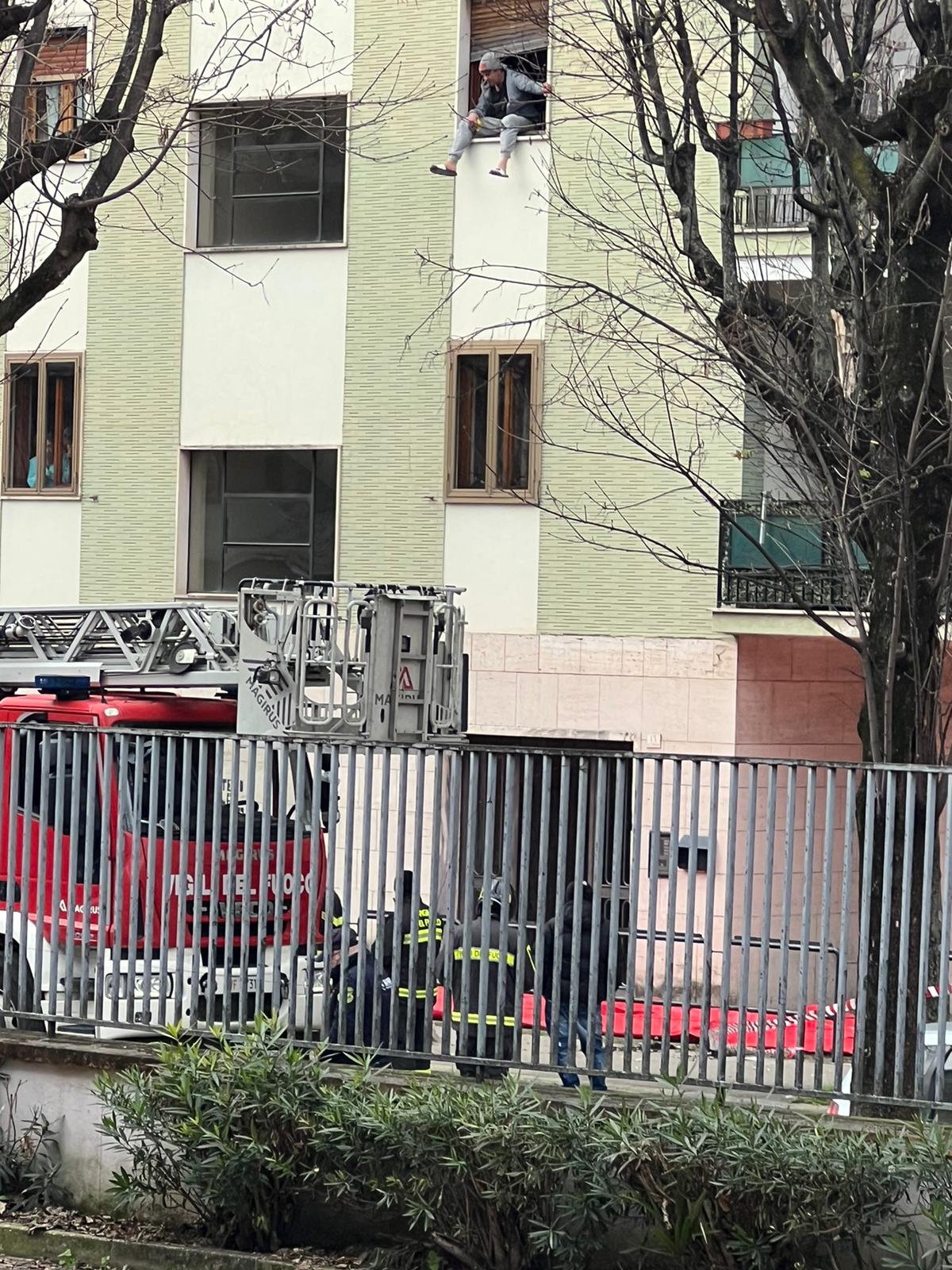 Caserta – Da stamattina sta tenendo in ansia tutti l’uomo che minaccia di lanciarsi dalla finestra del suo appartamento in via Settembrini a Caserta. Ignoti i motivi che potrebbero indurlo al gesto estremo. L’uomo si trova già da qualche ora seduto sul davanzale della finestra del suo appartamento al secondo piano. Sono intervenuti intanto anche i vigili del fuoco che stanno provando a dissuaderlo. Diversamente sono già organizzati per evitare che un gesti estremo sia per lui irreversibile.